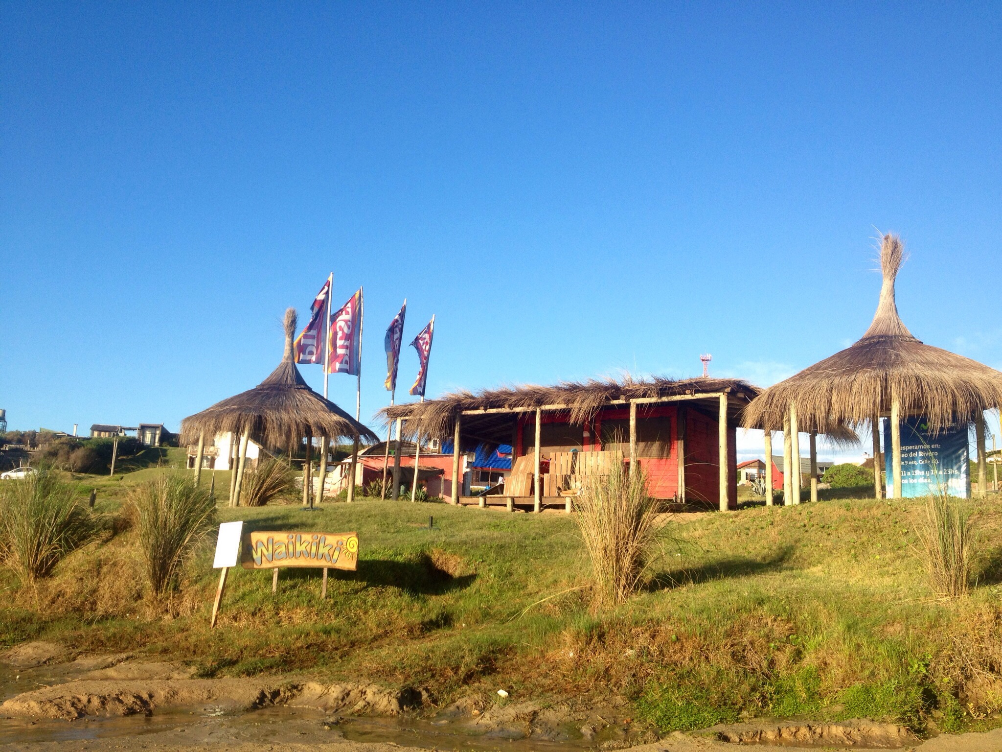 The beach huts that are used as surf schools, bars or just to play Brazilian samba or reggae for the beach crowds.